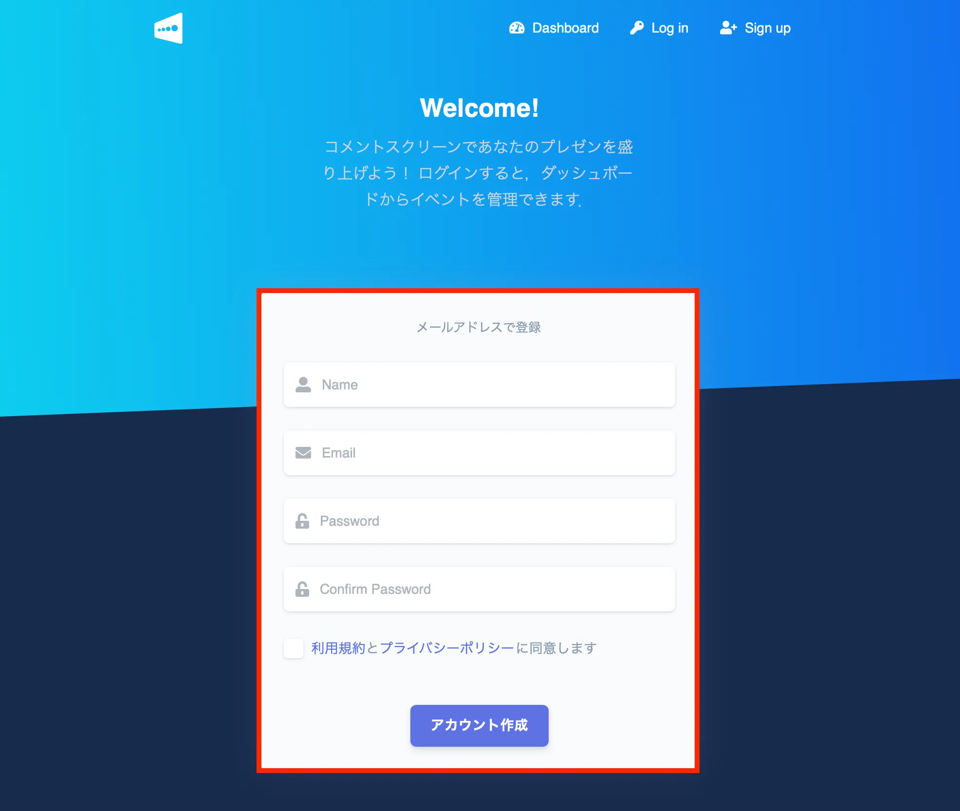 CommentScreenは,Slidoとは違い,画面共有している画面上にコメントが流れるため,他人のコメントやスタンプを見る際に画面を遷移させたり視線を大きく移動させたりする必要がないという特徴があります.また,デザインが動画のコメントに似ており,学生が楽しく授業に参加できます.