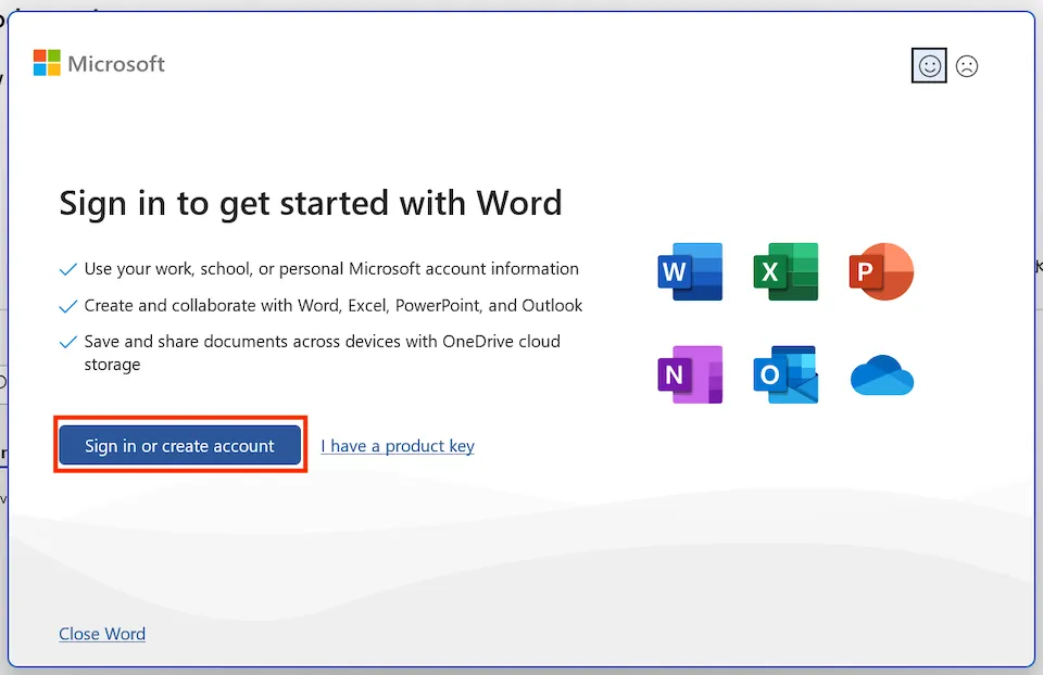 You are not signed in with any Microsoft account in the Office app. Please click “Sign in or create an account.” - If the above screen is not displayed and the normal editing screen is displayed