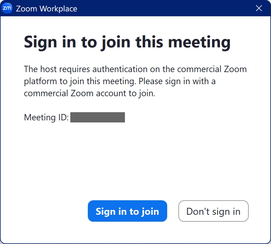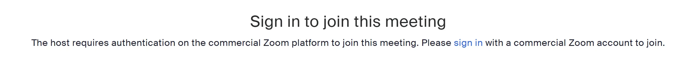 For example: When the meeting creator joins using the account they created the meeting with, they are automatically assigned the role of “host”. Similarly, if someone was designated as an “alternative host” by the meeting creator, joining with the designated account will assign them either the “host” or “co-host” role. If not signed in, they will not be treated as a host when joining the meeting. Instead, the following screen may appear, and the meeting may not start.