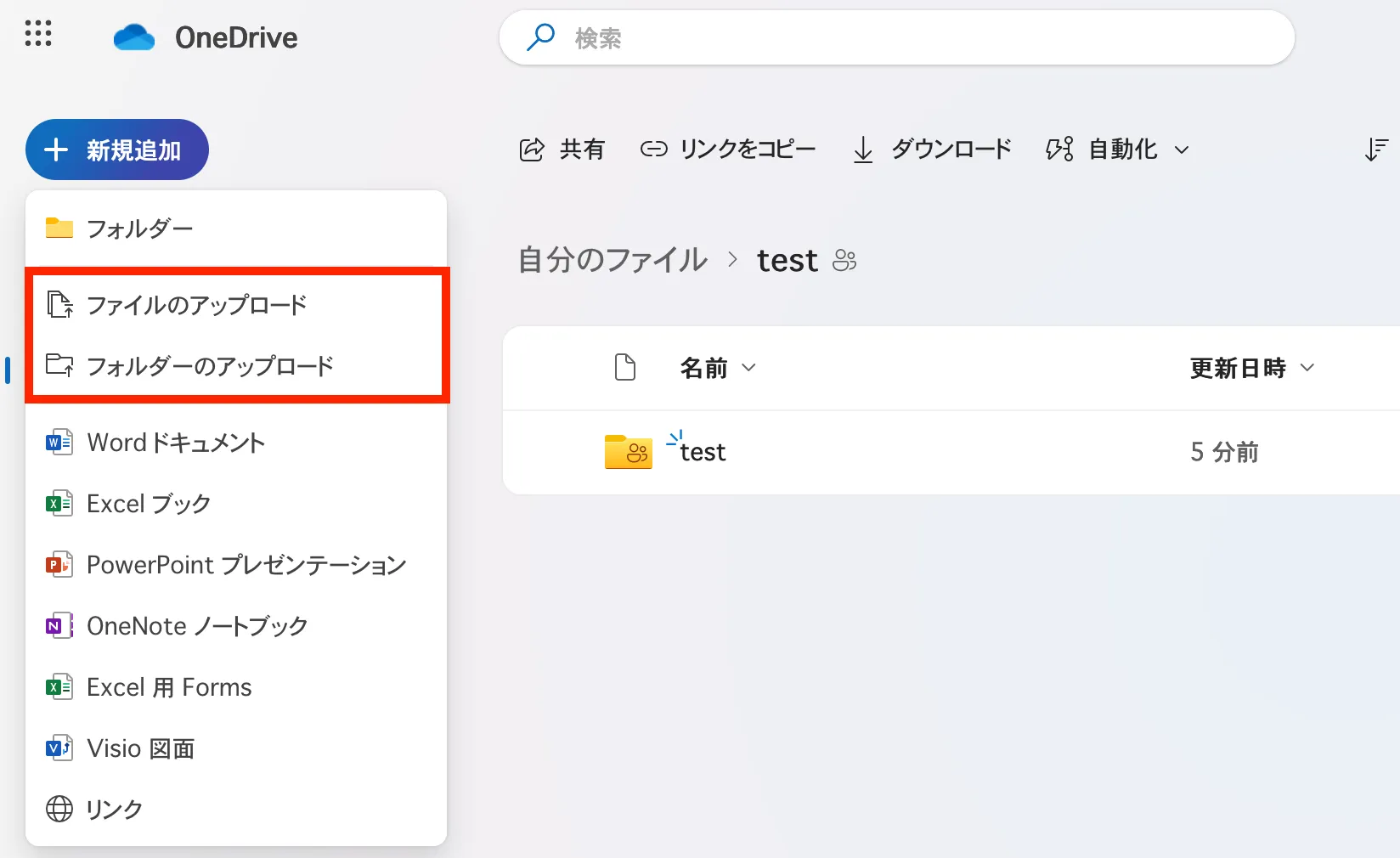 ここでは,OneDriveにファイルをアップロードする方法を説明します.