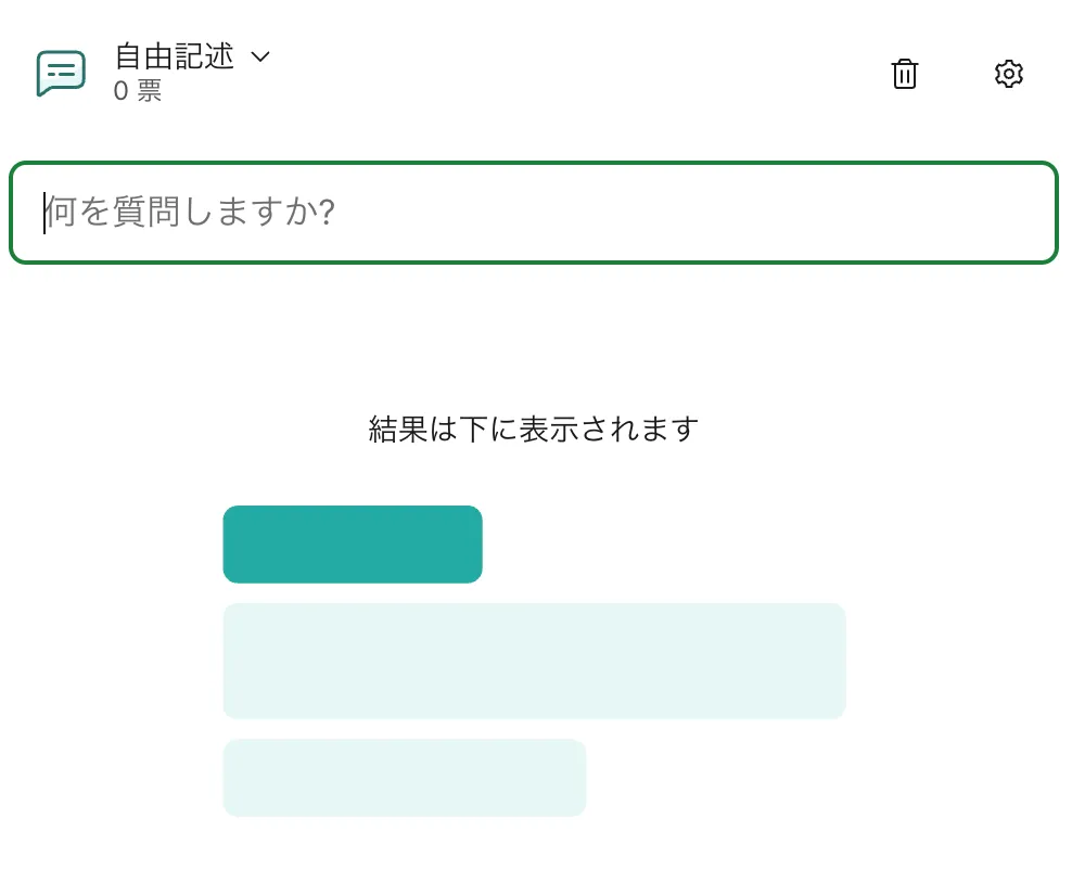 - ワードクラウドー参加者の回答が「クラウド」として可視化される質問を設定する(参加者は短文形式で答える)