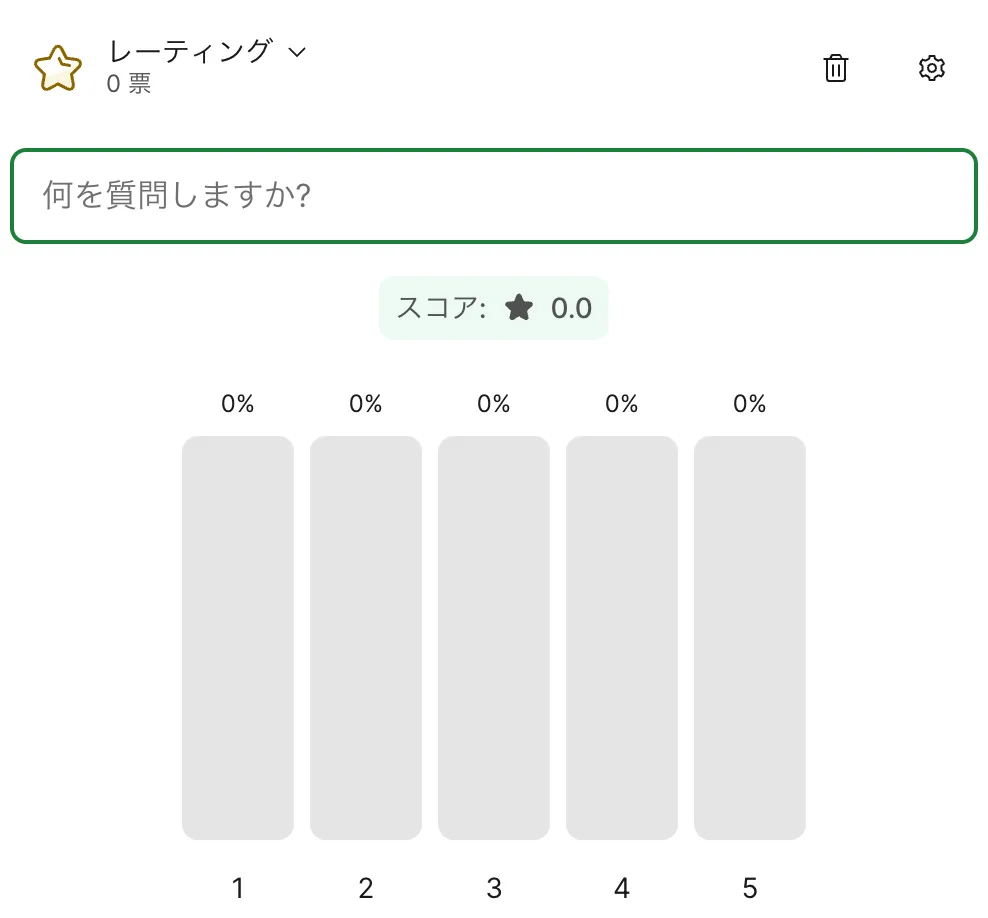 投票には以下の6種類の単発質問と,それらをまとめて実施するアンケートがあります.投票機能の画面から,各機能のアイコンのボタンをクリックすることで新規の投票を作成できます.