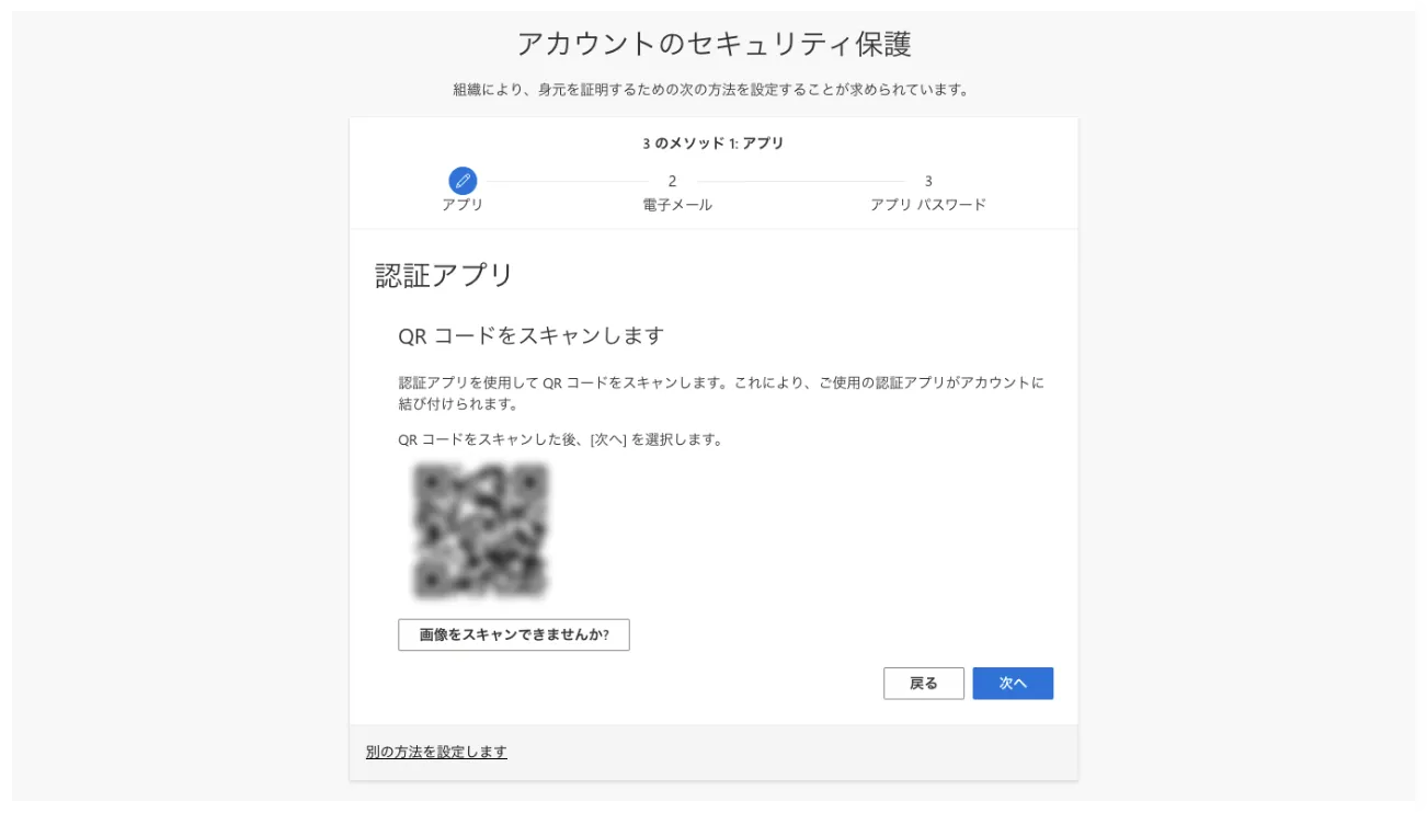 「別の認証アプリを設定する」というリンクを探して押してください.