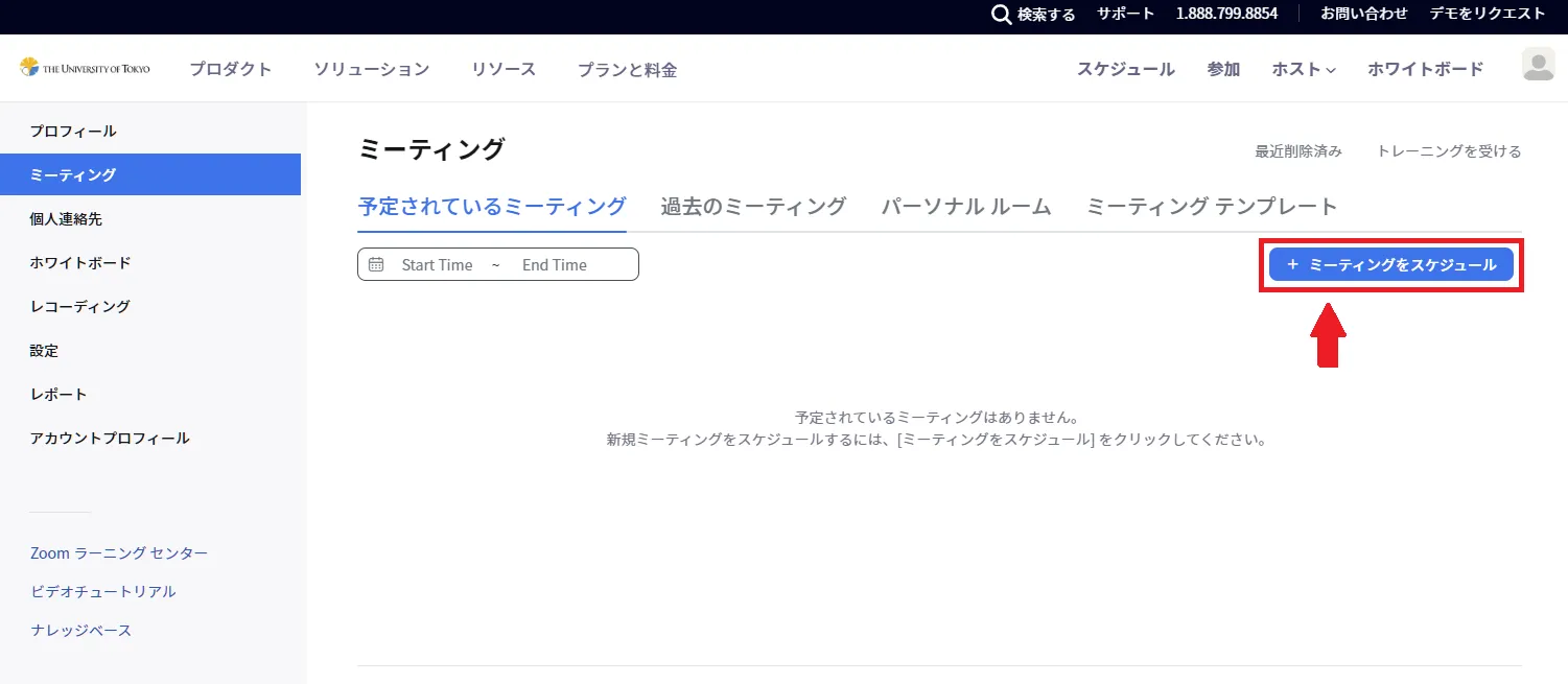 - 「ミーティングをスケジュール」を選択してください.