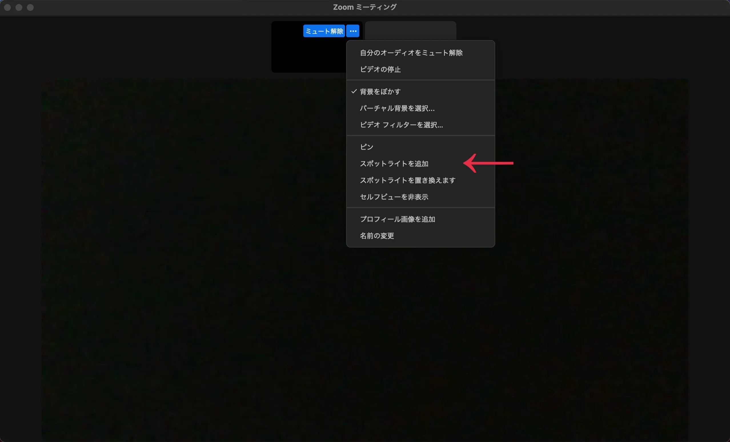 2人以上のスポットライトを設定したい場合には,再度参加者のビデオにカーソルを合わせて「…」をクリックした後,メニューから「スポットライトの追加」を押してください.