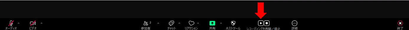 - 進行中のZoom画面の下部にある「レコーディング」というボタンを押してください.